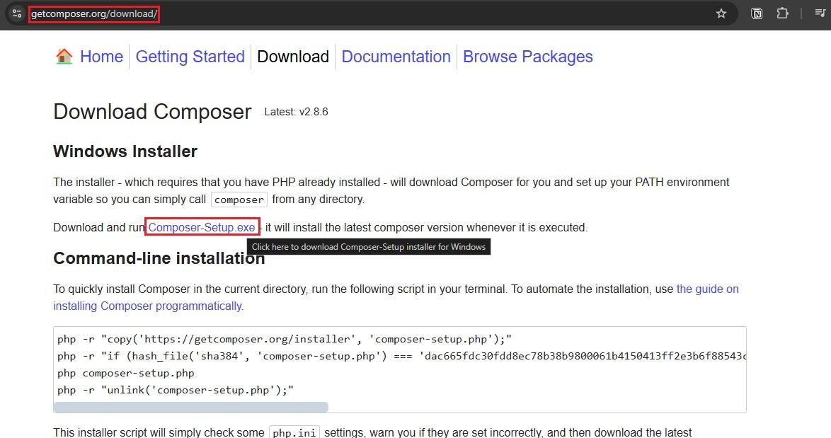 Installing Laravel requires a PHP package manager called Composer. If you don’t already have it, point your browser to getcomposer.org.