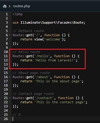 Next, test if routes are working by creating a basic route in the routes/web.php file like so: