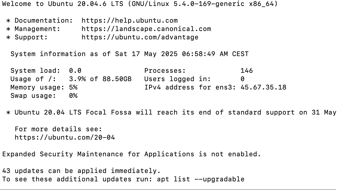 If you chose a control panel like CyberPanel or Hestia, you’ll also get login details for that.